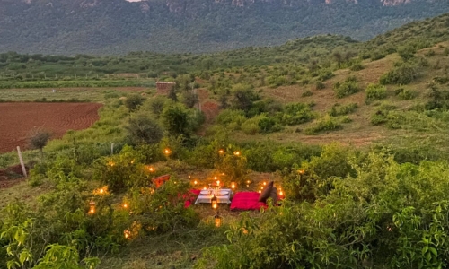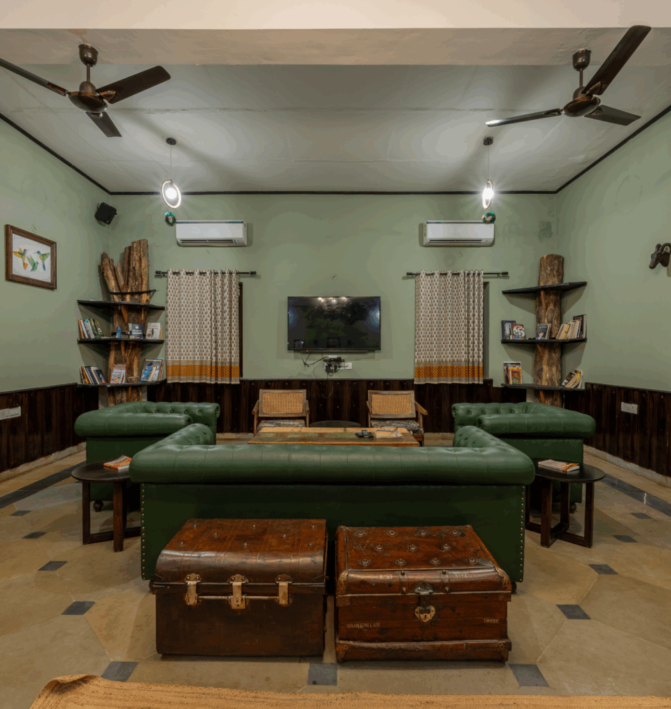 Escape to a sanctuary of serenity. Nestled near Sariska, our golden sandstone villa blends rustic charm with modern luxury. Wake to birdsong, unwind on private decks with peacock sightings, and savor sunsets through arched windows. Sustainable elegance meets adventure—organic linens, reclaimed teak, and nature’s symphony.